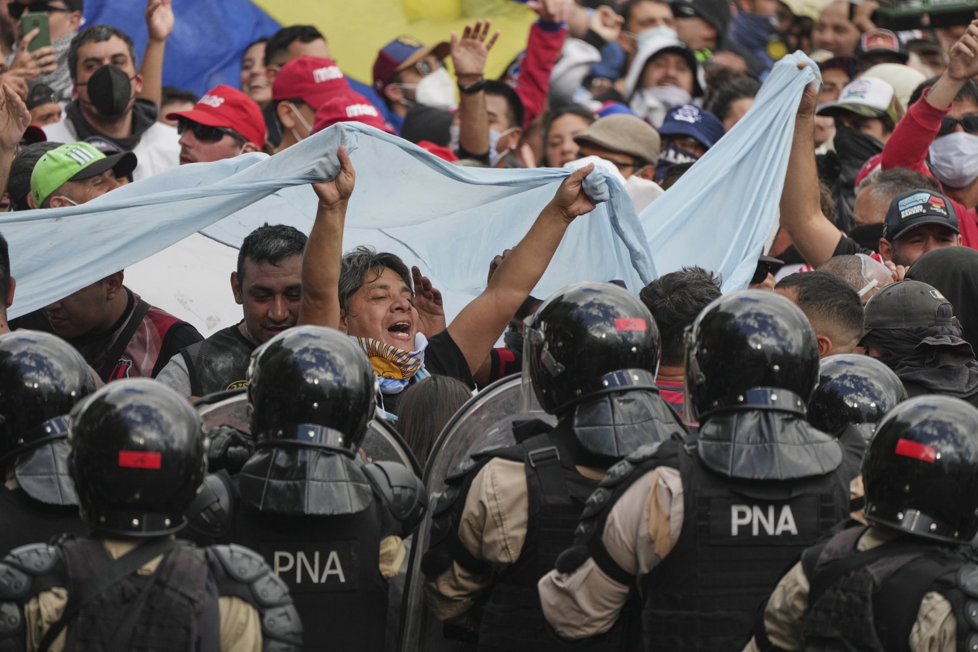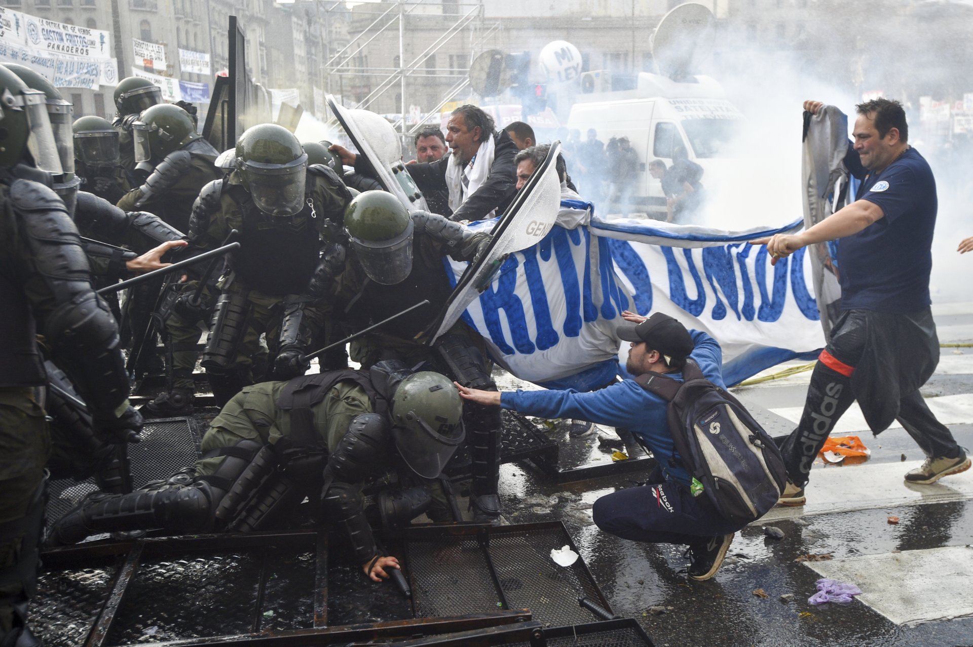 През март 2025 г. властите изпратиха полицията да потуши протестите. Според данни на правозащитници от Международната федерация за правата на човека, действията на силите за сигурност често са били съпроводени с необосновано насилие. Например, когато към демонстрациите в Буенос Айрес се присъединиха групи футболни фенове, полицаите са стреляли по хората с гумени куршуми, използвали са водни оръдия и сълзотворни спрейове. По време на един от тези протести в средата на март са задържани над 100 души, а най-малко 20 са потърсили медицинска помощ.