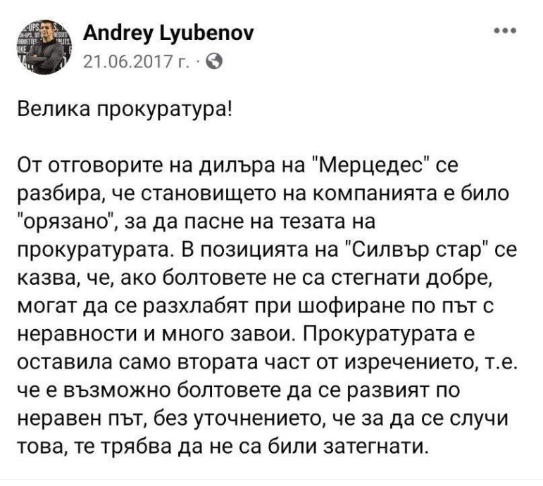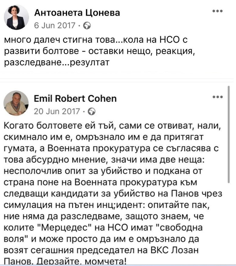 Позицията е учудваща на фона на тежката драма, завладяла същите хора преди 6 години. Тогава председателя на Върховния касационен съд (ВКС) Лозан Панов пътувал към Берковица, когато чули необичаен шум в „Мерцедеса“ на НСО. Спрели колата и установили, че болтовете не са затегнати.