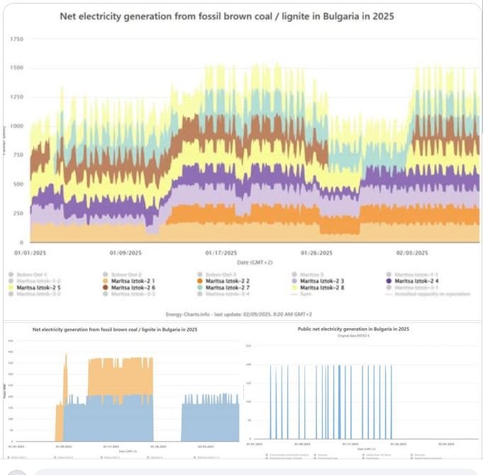 Първите 40 дни на 2025 г. изминаха. Въпреки много топлия януари (+3 градуса над нормата), цените на тока са много високи - средно около 60% над миналогодишните. Лигнитните ТЕЦ отново носят тежестта на зимата като за първия месец дават с 22% повече електричество в сравнение с преди година. Февруари тръгна студен и лигнитните ТЕЦ работят още по-активно - за 9 дни (33% от месеца) вече са произвели 57% от количеството, произведено през февруари, 2024 г. Ако я карат така, спокойно ще направят скок с поне 50% за месеца. Това пише на страницата си във Фейсбук енергийният експерт Боян Рашев.