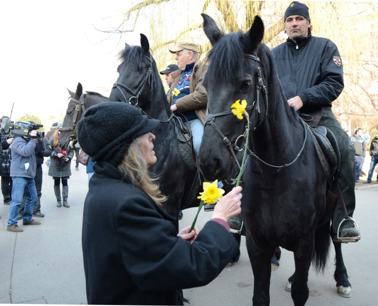 Приятелите му доведоха благородните животни пред църквата, когато се прощаваха с него, преди да потегли в последния си земен път.