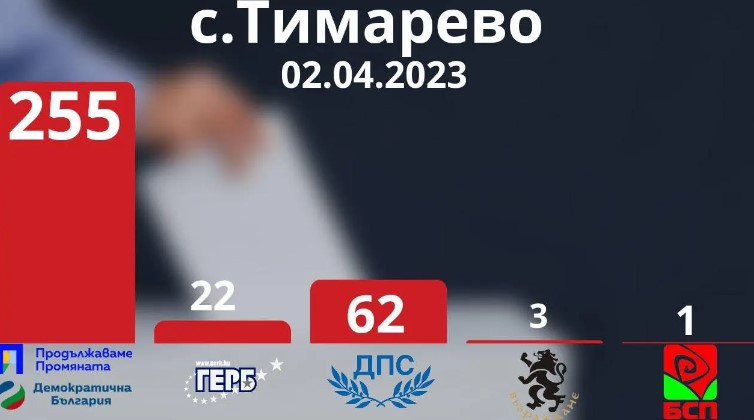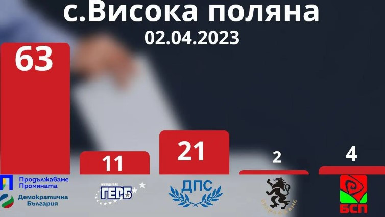 Във Висока поляна от 54 бюлетини в урните – 38 бюлетини са за Промяната и само 7 за ДПС. Народна любов във вид на цели 255 гласа се изсипа и в село Тимарево от общо 348.
