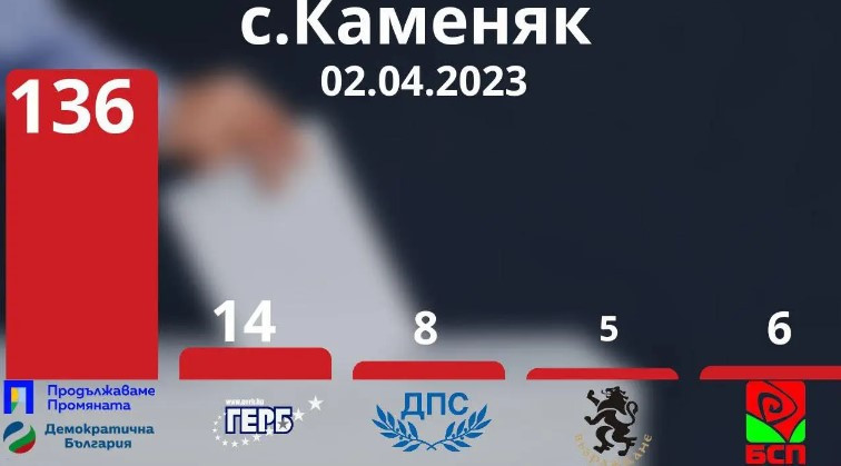 Очевидно е, че по селата в региона масово и под строй са гласували за Промяната и ДБ. От 181 гласа в село Каменяк 136 са за тях и едва 8 за ДПС.