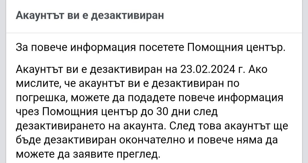 Когато ти деактивират профила във Фейсбук без никакво обяснение и причина