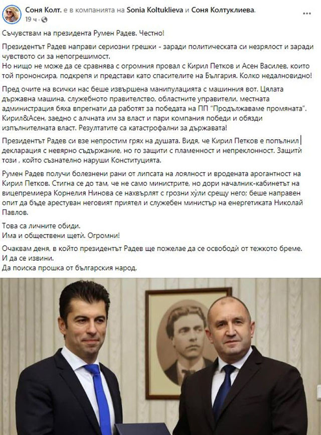 От профила във Фейсбук на Соня Колтуклиева