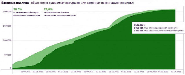 Още по тревожна е картината, ако се вземат данните само за последния месец. За целия март (без 30 и 31, за които все още няма статистика) са поставени 15 738 нови дози – или средно около 500 души на ден. Това е абсолютен антирекорд от идването на ваксините у нас. Тенденцията е точно толкова обезкуражителна дори и когато в бройката бъдат вкарани вторите и бустерните дози, които сами по себе си не представляват нови хора, убедени да се ваксинират. Бум на желаещи за бустери имаше след новогодишните празници, но сега и той е затихнал.