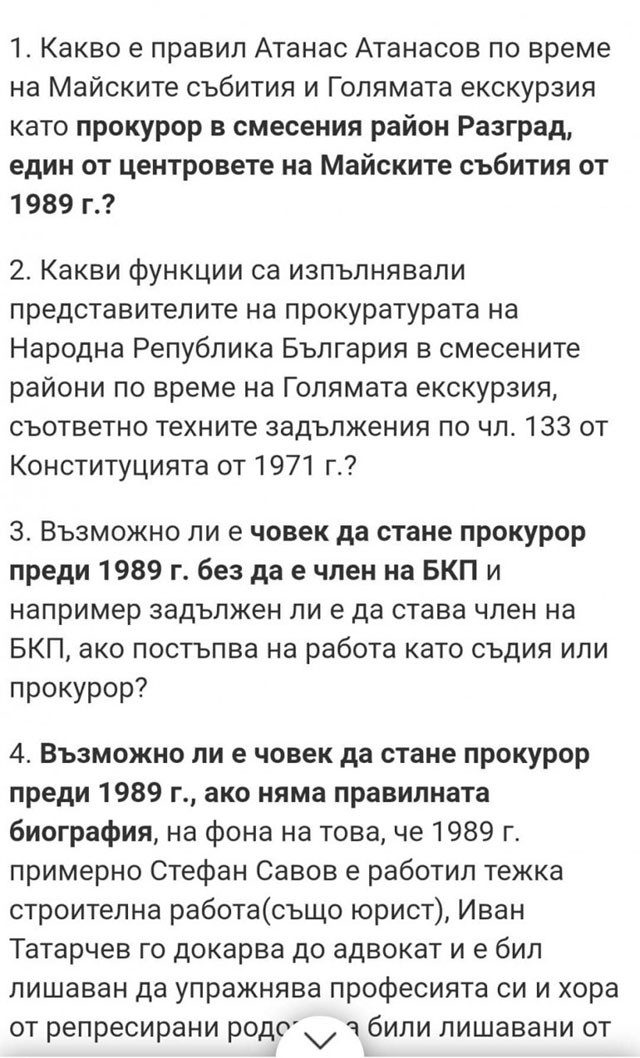 Молбата ни е на който му се отдаде възможност да му ги зададе и да ни прати видеото с отговорите на генерала-прокурор. Ние ще го публикуваме.