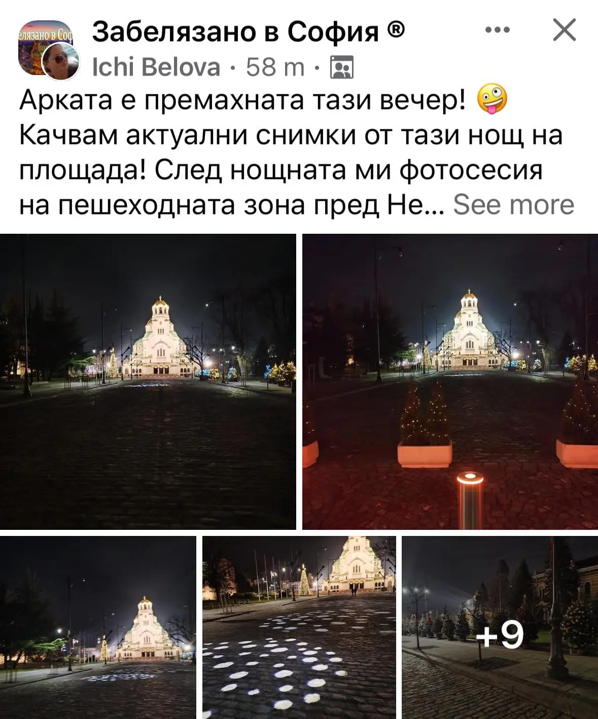 Столичната община премахна временната арка пред „Св. Александър Невски“, която не успя да се задържи дълго след отрицателната обществена реакция. Тя беше част от кампанията „Светлината в нас“.