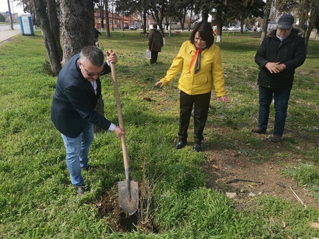 Там те бяха посрещнати от местните хора. Двамата председатели участваха в засаждането на дръвчета и храсти в красивия парк на общината, в който предстои инсталиране на съвременна система за капково напояване.
