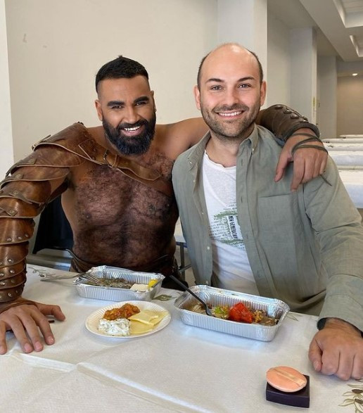 Азис хапва гол по време на снимки. Това се вижда на снимките, които певецът публикува в своя инстаграм профил. На тях се вижда как той, облечен като гладиатор, похапва в бекстейджа.