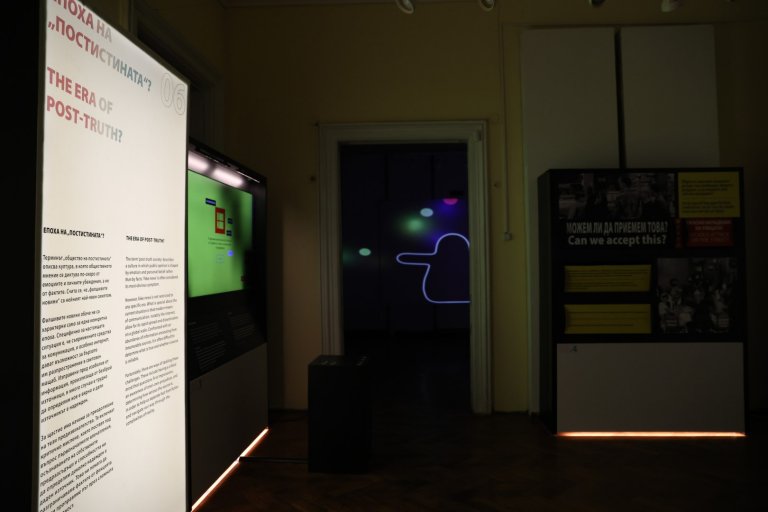 Експозицията включва и интерактивни пространства, в които посетителите, чрез игри и видео материали, могат да влязат в амплоато на проверяващи фактите, сблъсквайки се с трудната задача - да разберат кое е истина и кое лъжа; какво може да бъде публикувано и какво не.