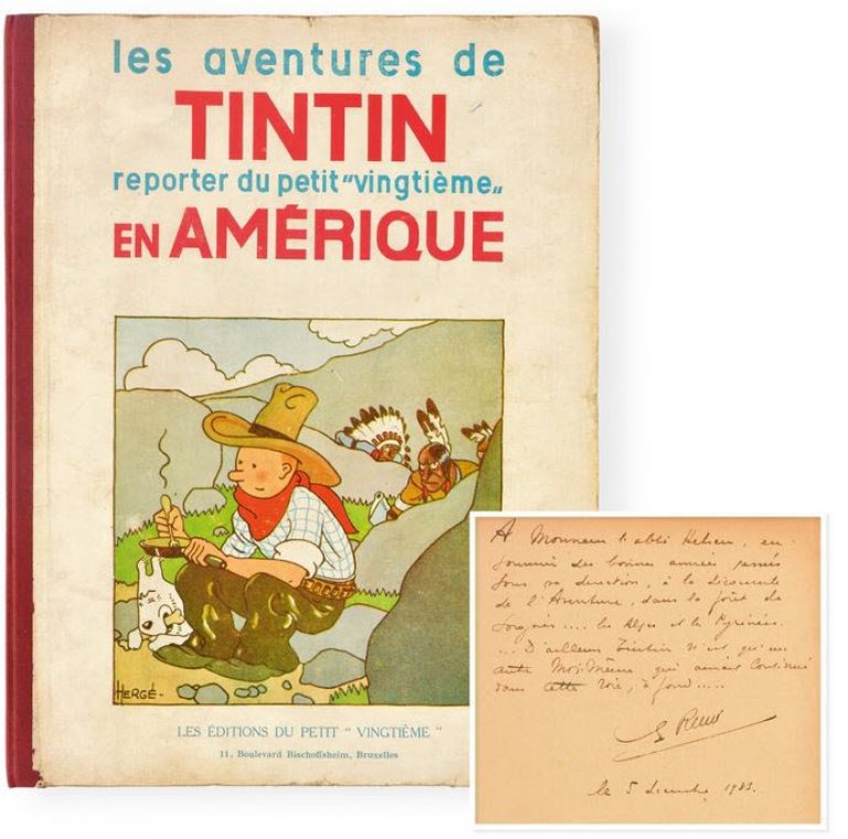 Комикс "Тентен в Америка" от 1932 г. с дълго и много лично посвещение от белгийския художник Ерже беше продаден на търг за 191 145 евро, предадаха АФП е БТА, позовавайки се на аукционна къща "Тажан".