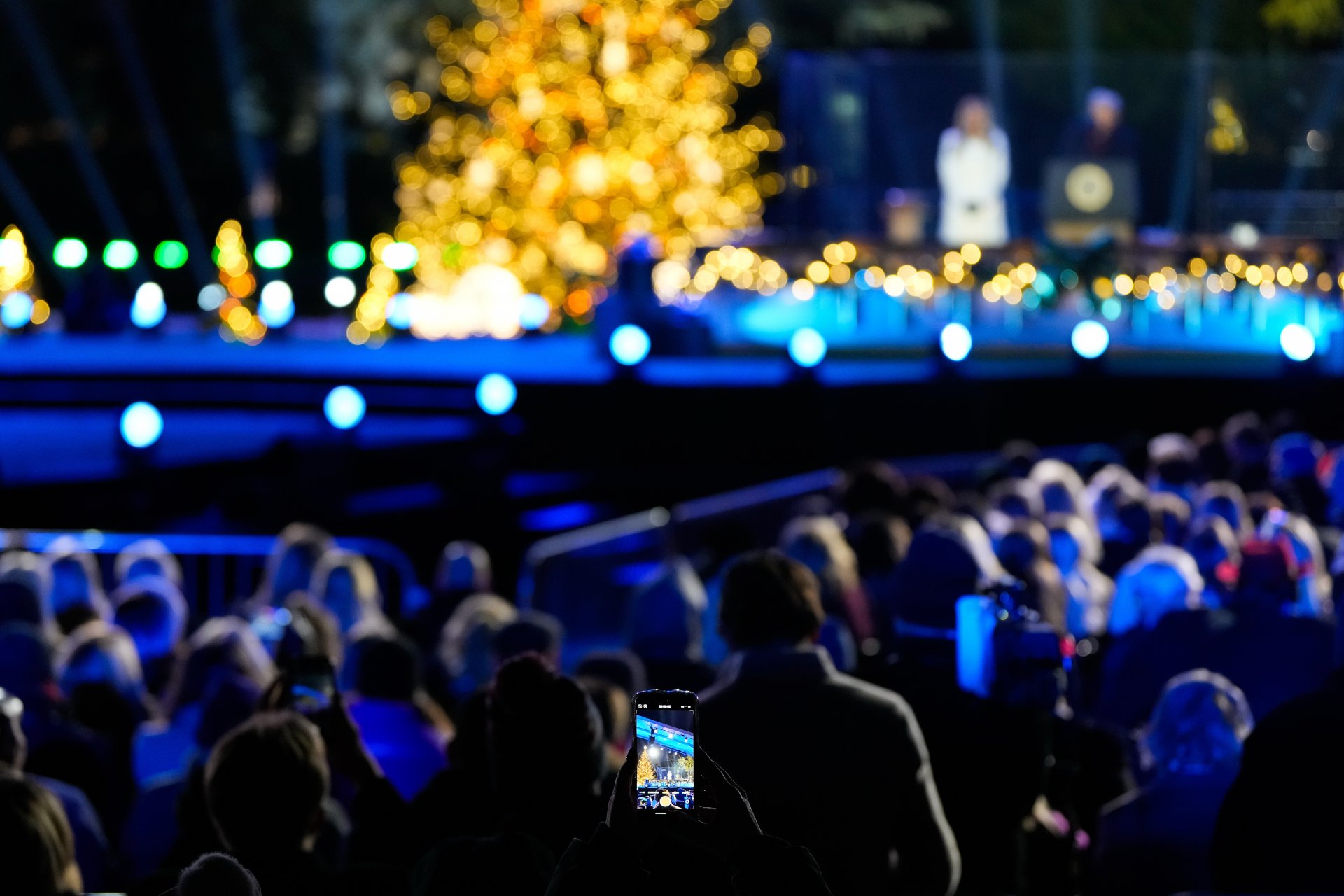 На ежегодното палене на светлините на дървото, южно от Белия дом, президентът Доналд Тръмп каза пред събралите се, че първата дама ще има честта да ги запали и сам преброи от пет до нула.