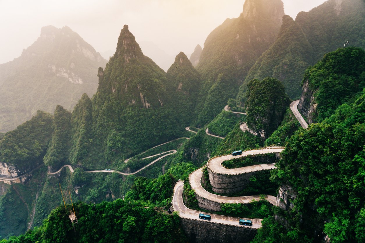 На следващата сутрин гъстите облаци сякаш ни следваха към планината Тианмен, разположена на час път в сърцето на град Джандзядзие. Тази местност не е част от Националния парк Джандзядзие, но Шай я препоръча горещо заради "нещо специално". Подобно на лифта в националния парк, голямата атракция тук е кабинковият лифт, който се изкачва и спуска по планината. Седейки в стъклената гондола за осем души, можех да разбера за какво е цялото вълнение. Това е най-дългият кабинков лифт в света, който се простира на повече от 7 км и стига до върха за около 30 минути. Тя се плъзга по косо наклон и предлага 360-градусова гледка към извисяващите се върхове и планинския път с 99 остри завоя.