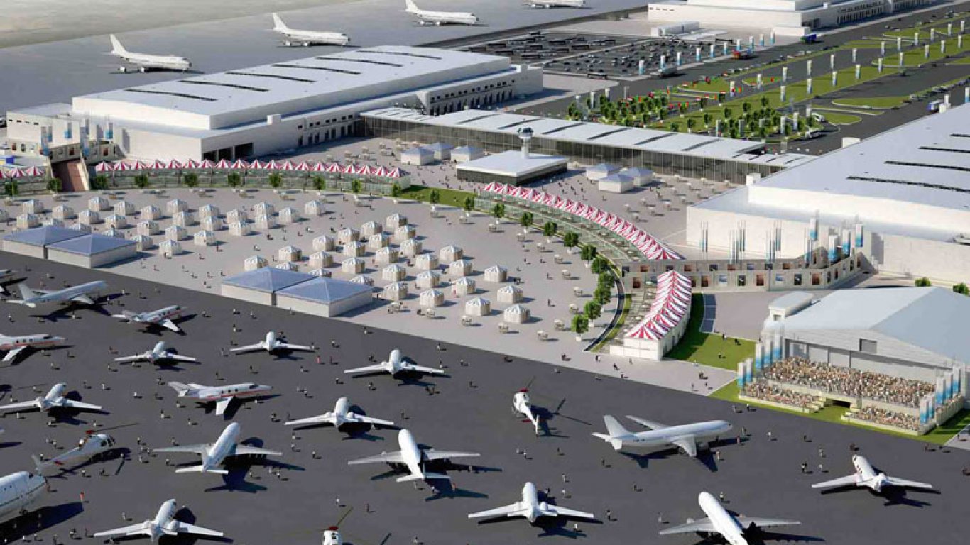 Той разказва пред репортери на авиошоуто, че вече се създават проекти за новото мегалетище, но масивният, триизмерен умален модел, показан на събитието, с неговите шест успоредни писти и три гигантски терминала, вече е остарял с няколко години.