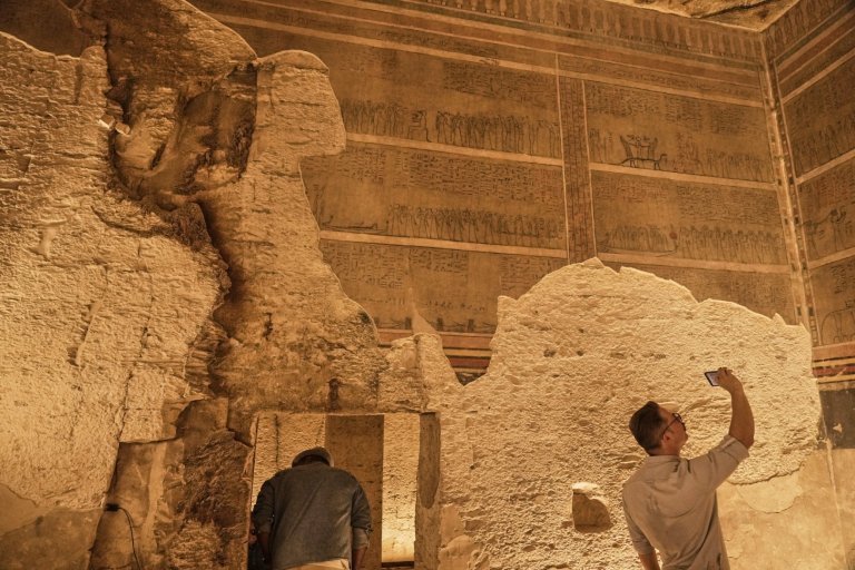 За разлика от други древни гробници в района, тази не е напълно украсена, каза Исмаил. Рисунките изобразяват Аменхотеп Трети с древноегипетски богове, а погребалната камера съдържа надписи със сцени от "Книга на мъртвите" - сборник с писания, целящи да насочват мъртвите през подземния свят в Древен Египет.