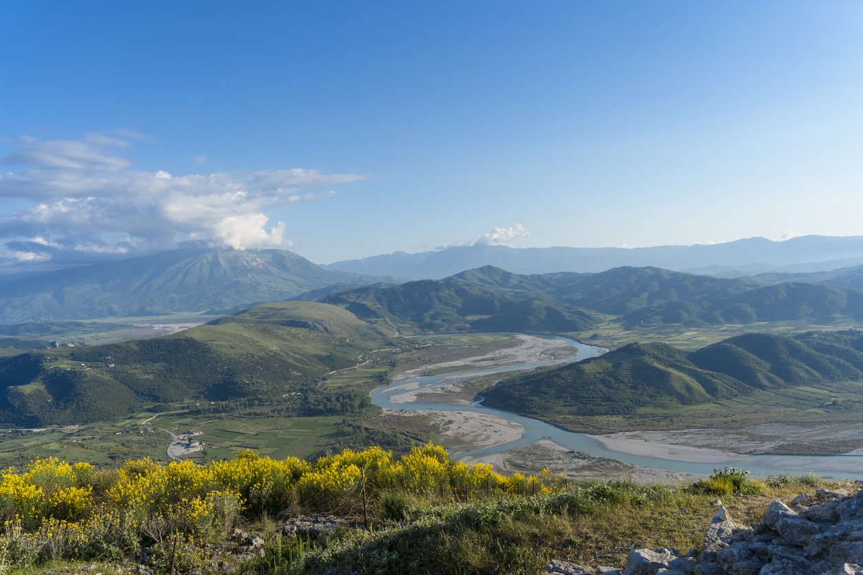 Наблизо, край Пермет, се намират горещи извори, известни не само с успокояващите си топли води, но и с емблематичния вековен мост от османската епоха. 20 километра по-нататък реката леко се разширява и течението се успокоява, но пейзажът остава драматичен с извисяващите се планини във всяка посока (около 70% от Албания е планинска).