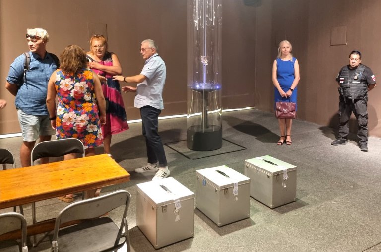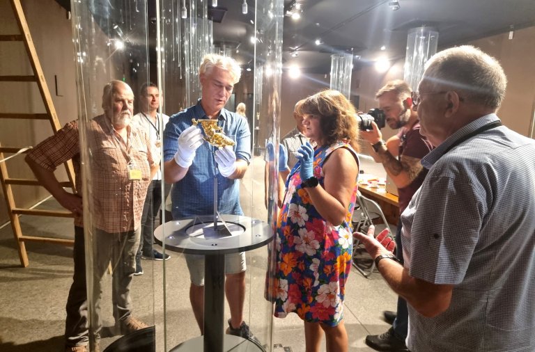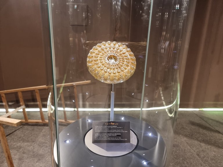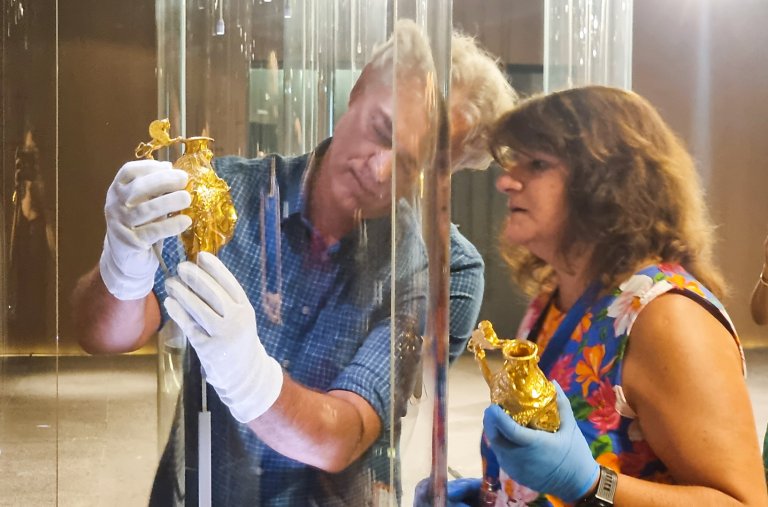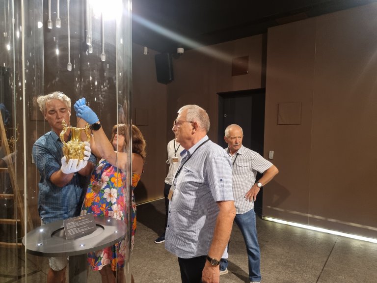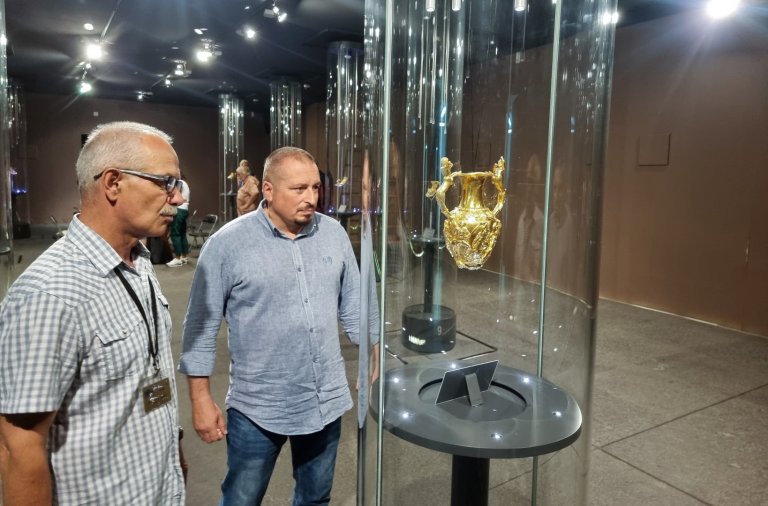 Оригиналът на Панагюрското златно съкровище се завърна в Панагюрище и още от днес ще може да бъде видян в специално изградената за него зала трезор в Историческия музей в средногорския град. Реликвите ще останат в музея до 10 септември 2024 г. Снимка: Кореспондент на БТА в Пазарджик Николета Манджукова