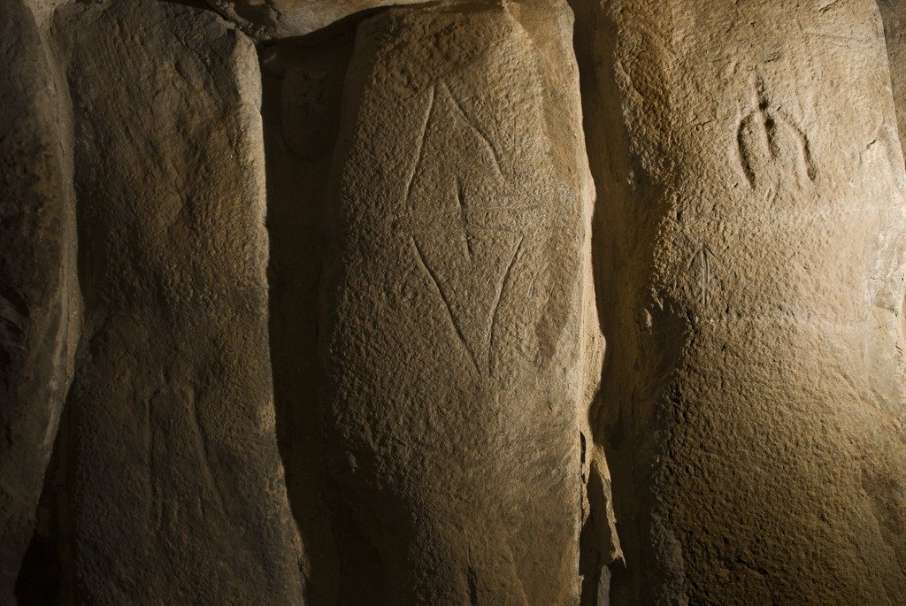 Долменът се състои от кръгла могила с дълъг проход, който води до камера, където са открити осем човешки останки, заедно с различни артефакти, включително чаши, купи, чинии, кинжали и морски фосили - всички от съществено значение за задгробния живот. Но това, което прави този долмен наистина уникален, е наличието на гравюри и рисунки върху някои от стоящите камъни, които обграждат прохода и камерата. Тези изображения изобразяват хора, чаши, ножове и геометрични форми и разкриват част от вярванията и обичаите на хората, които са построили и използвали тази гробница.