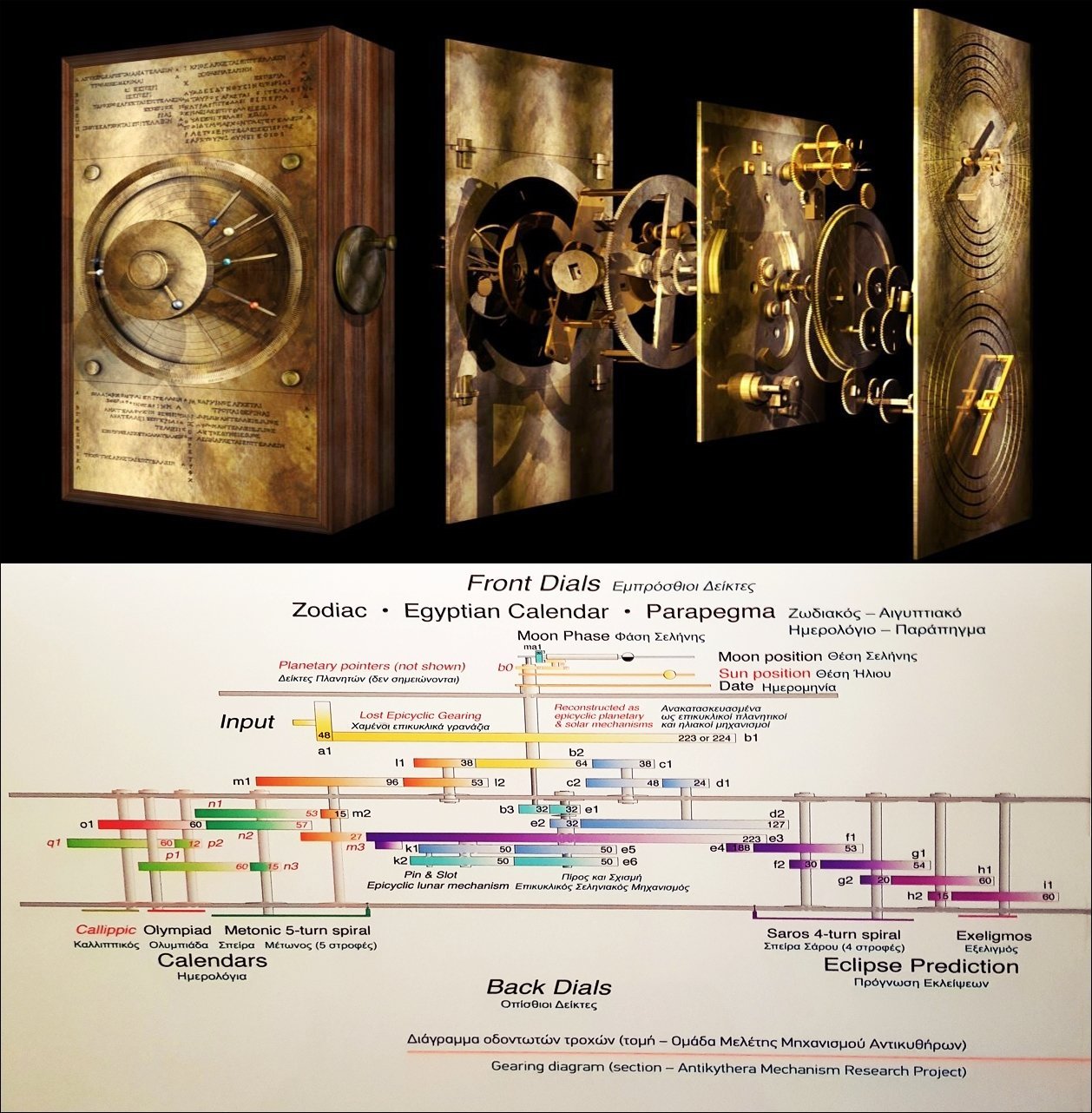 Рентгенови и компютърни томографи разкриват пластове от зъбни колела, надписи и календари, като всяка част допринася за астрономическите изчисления