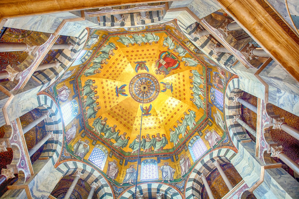 Разположен на границата между Германия, Белгия и Нидерландия, Аахен е често подценяван град с богата история. Основан още в римски времена като спа дестинация, той по-късно става любим град на Карл Велики, който го превръща в столица на империята си. Най-значимата забележителност на града е катедралата на Карл Велики, построена през 790 г., която е първата в Северна Европа и служи за коронацията на императорите на Свещената Римска империя в продължение на 600 години.