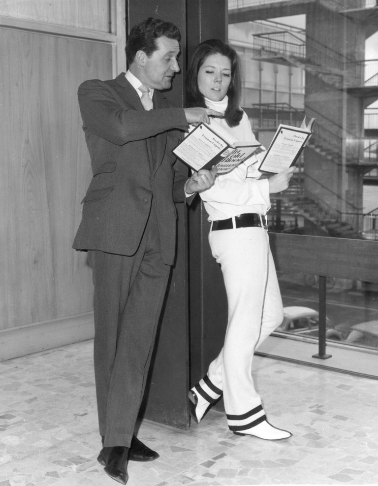 12 март 1966 г.: Актьорите Патрик Макни и Даяна Риг, четат „Хладнокръвно“ на Труман Капоти, докато чакат на летището в Лондон, за да пътуват из Съединените щати, за да рекламират своя телевизионен сериал „Отмъстителите“ / Снимка: Getty Images