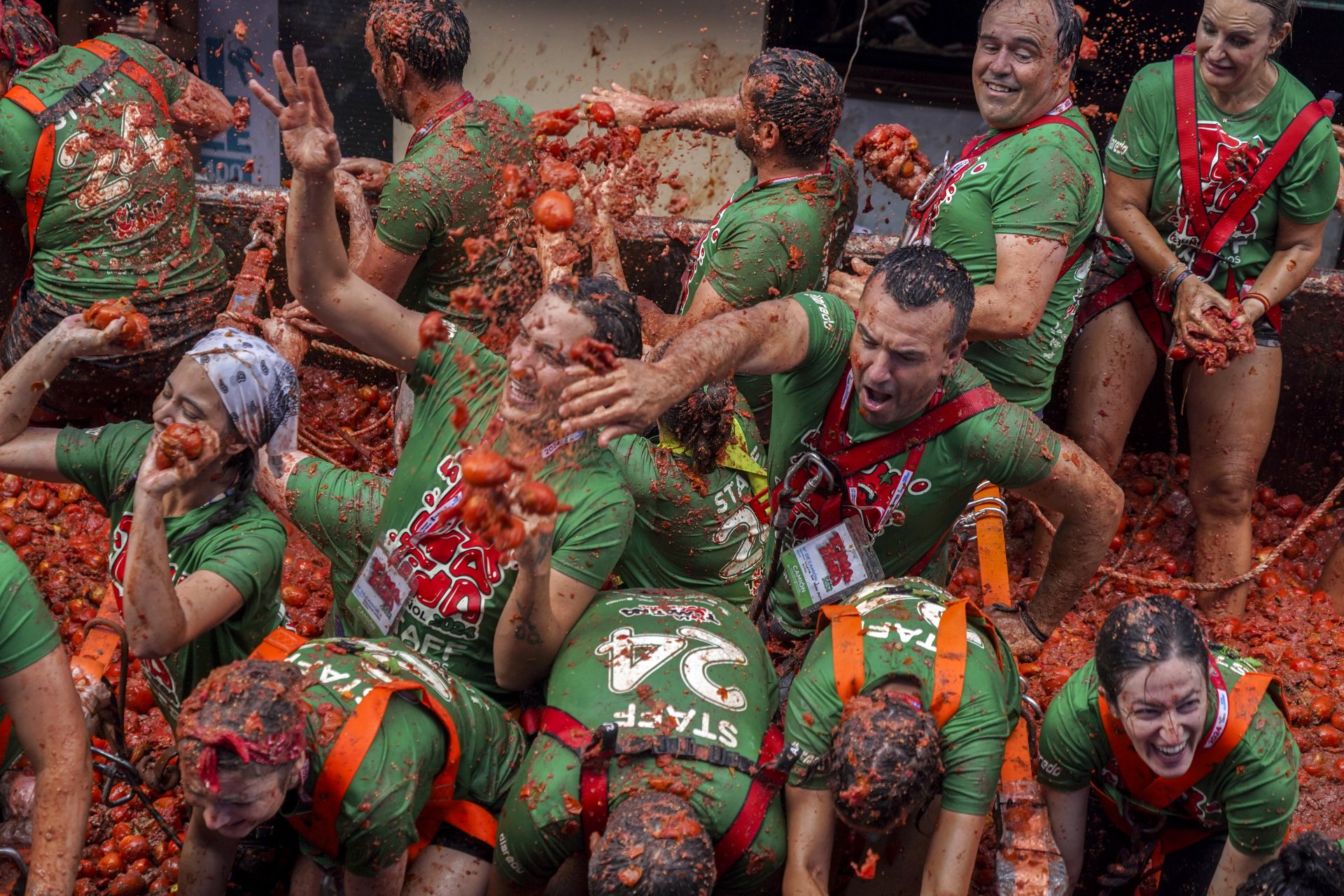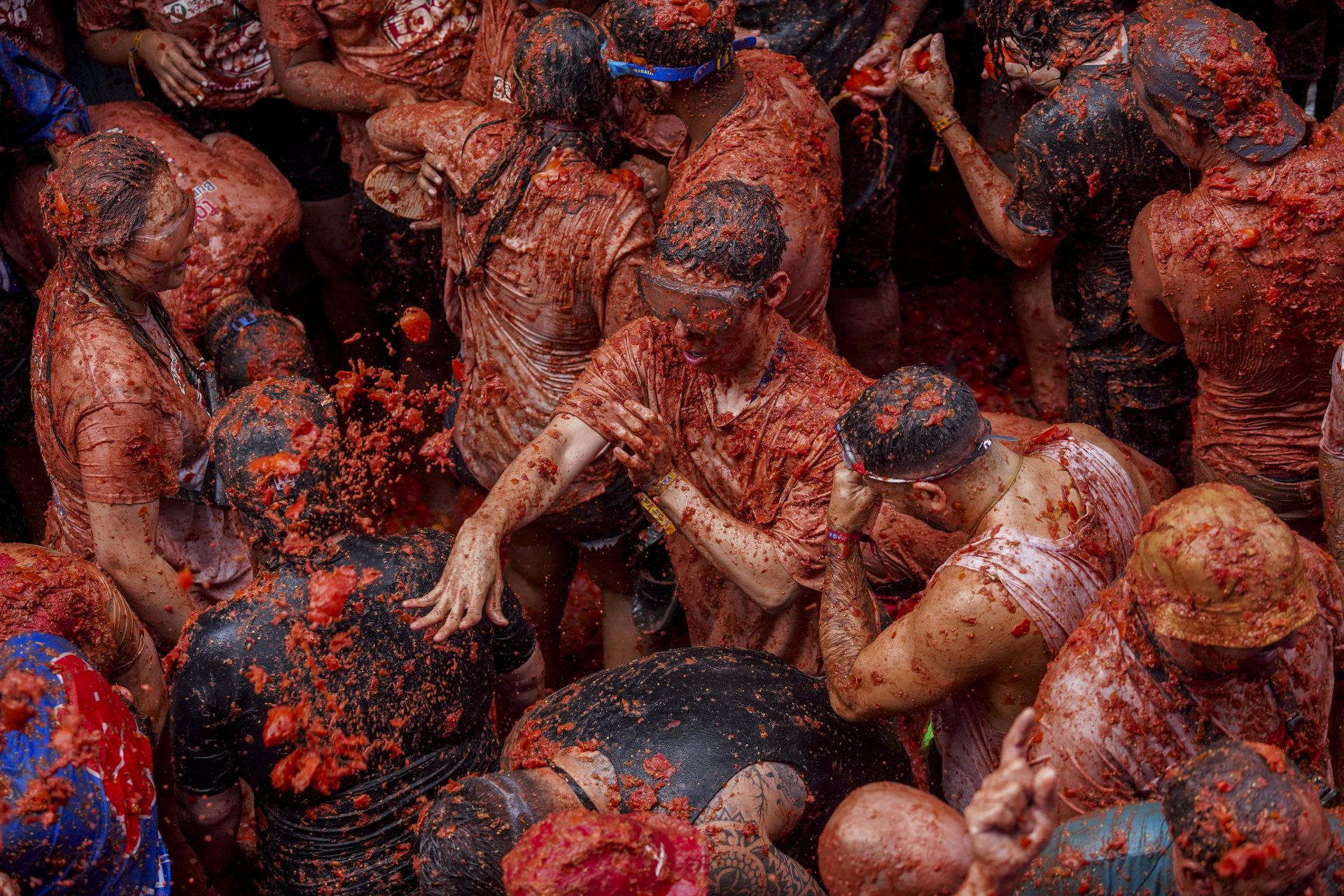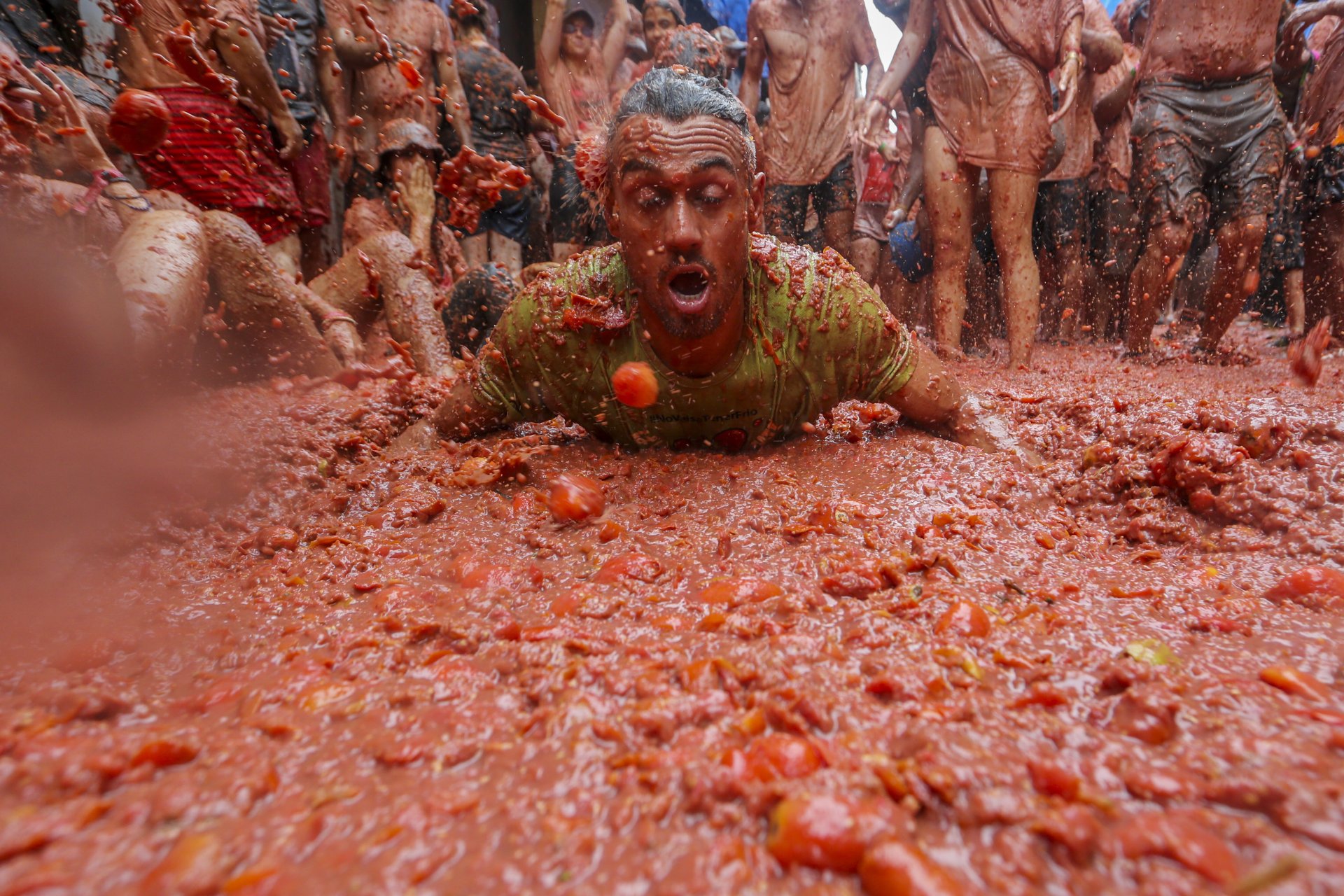 Хиляди се включиха в популярната в цял свят битка с домати. Фестивалът, известен с името "Томатина", се провежда ежегодно в Буньол, близо до Валенсия.