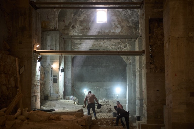 Запазената част от стената е била разкрита под изоставено крило на сградата, известна като Кишле, построена през 1830 г. като военна база. Крилото е използвано като затвор, включително от британците до 40-те години на XX век, а стените са били покрити с графити, издълбани от затворниците на английски, иврит и арабски. Останките от железните решетки на килиите все още са видими на тавана, допълват от АП.