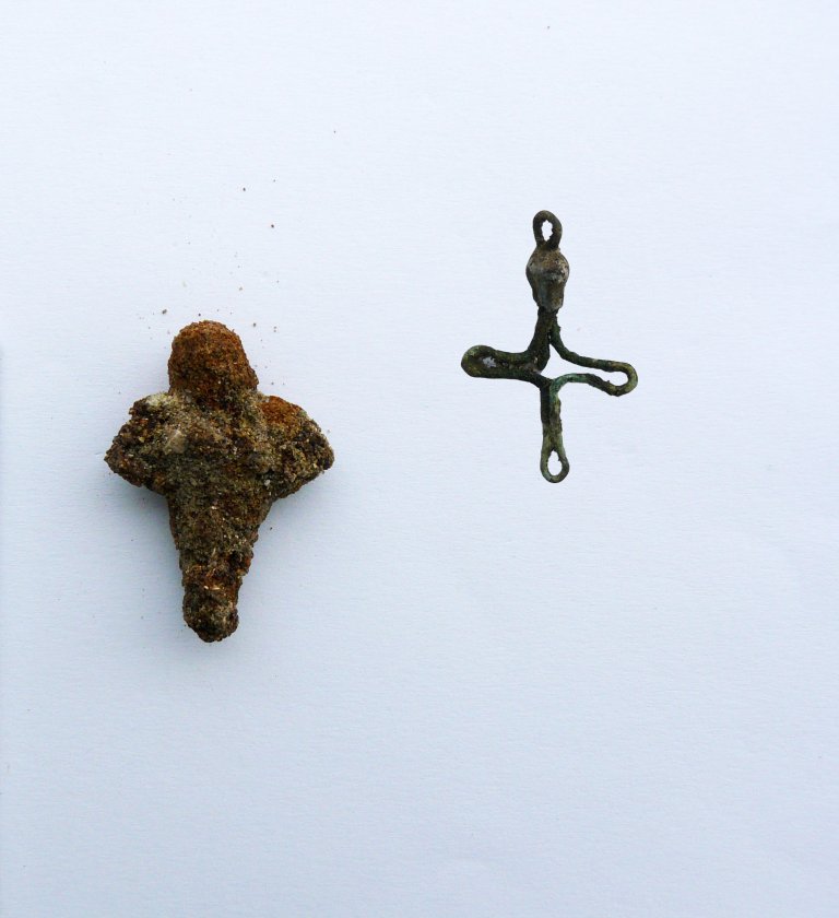 Желязно и бронзово кръстчета, намерени в погребения от некропола (Снимки: Архелогически музей, Созопол)