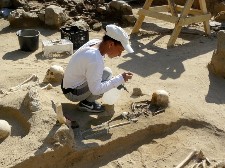Тепърва предстои да конкретизираме хронологията на некропола. Той се простира и от северната и южната страна на храма и е на три нива, като досега сме открили над 120 скелета. Човешките костни останки вече са демонтирани с цел тяхното изследване (пол, възраст, всичко, което е свързано с физическата антропология).