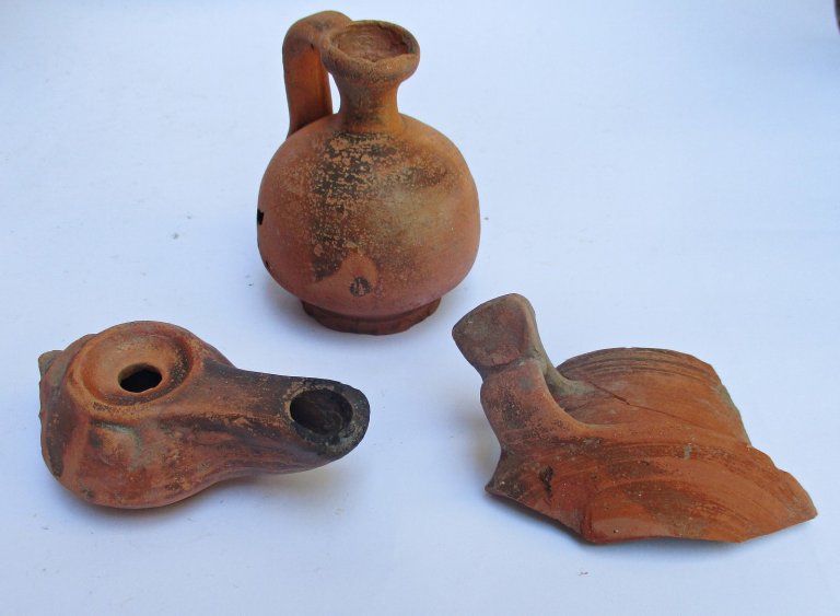 Лекит, лампа и фрагментиран кантарос от 2 в. пр. Хр. (Снимки: Архелогически музей, Созопол)