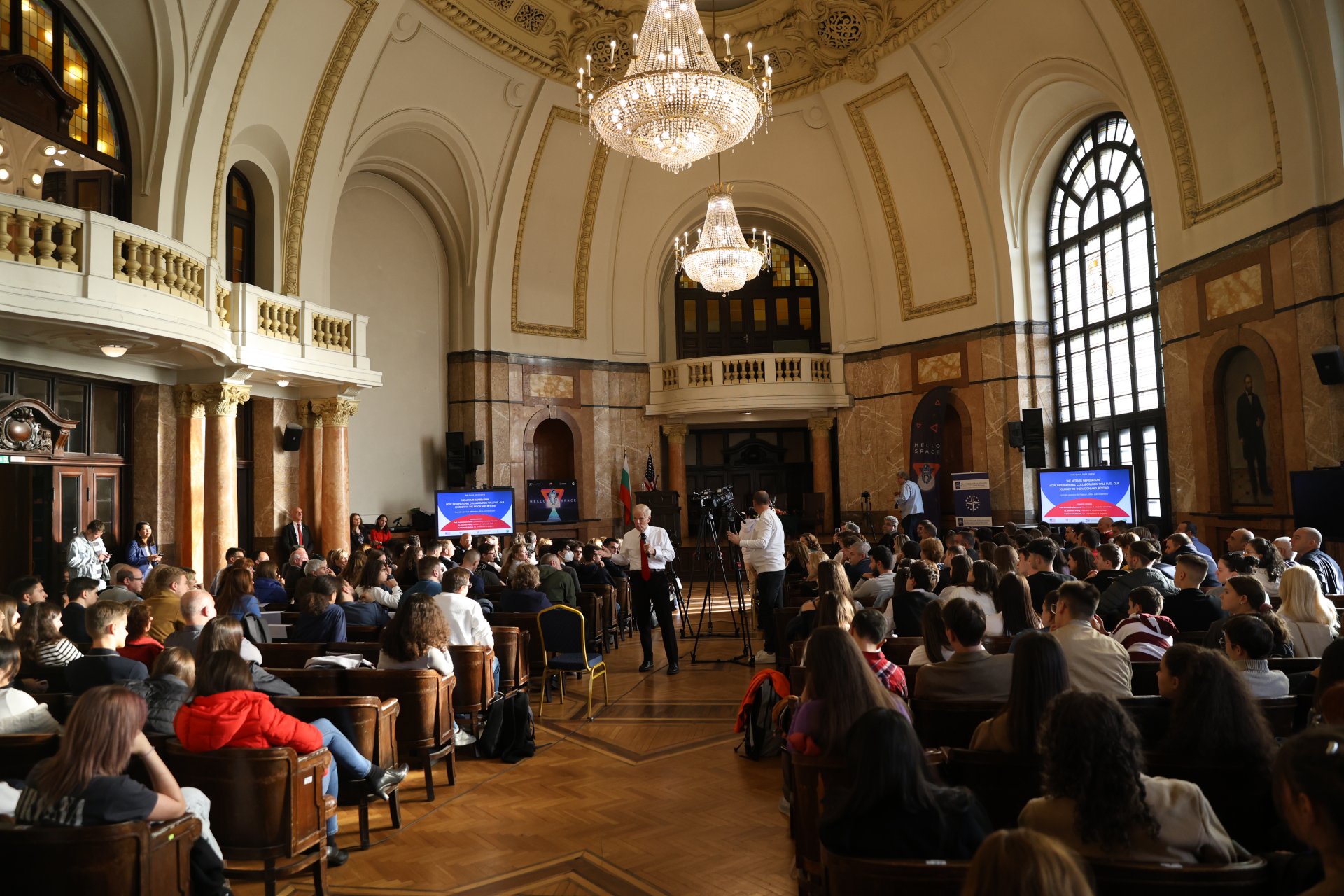 Сред участниците в срещата бяха вицепрезидентът Илияна Йотова, американският посланикът у нас, както и младежите Аделина Кънева и Димитър Марчев, които са президент и вицепрезидент за един ден в рамките на инициативата "Мениджър за един ден", на която президентската институция бе домакин днес.