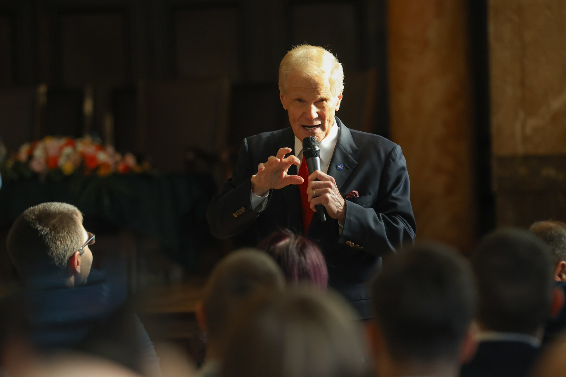 Бил Нелсън акцентира върху ползите от образованието по наука, технологии, инженерство и математика, и ролята на младите хора като представители на поколението "Артемида" - определението, което НАСА използва за следващото поколение изследователи на Космоса.