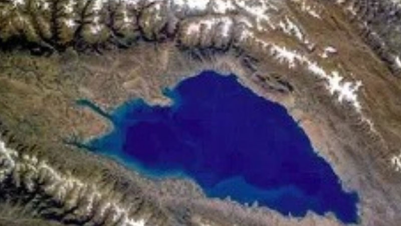 Изглеждащо от космоса като зашеметяваща синя празнота, езерото Исък Кул е дълго почти 182 км и широко малко под 60 км.