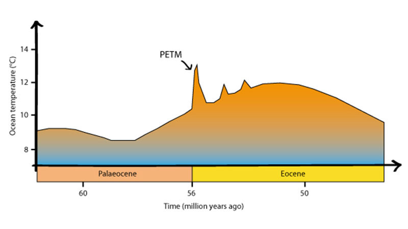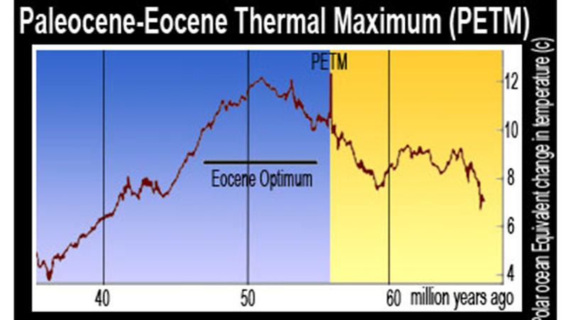 Най-горещият период в историята на Земята през последния милиард години е Палео-еоценският термичен максимум (PETM), настъпил преди около 56 милиона години.