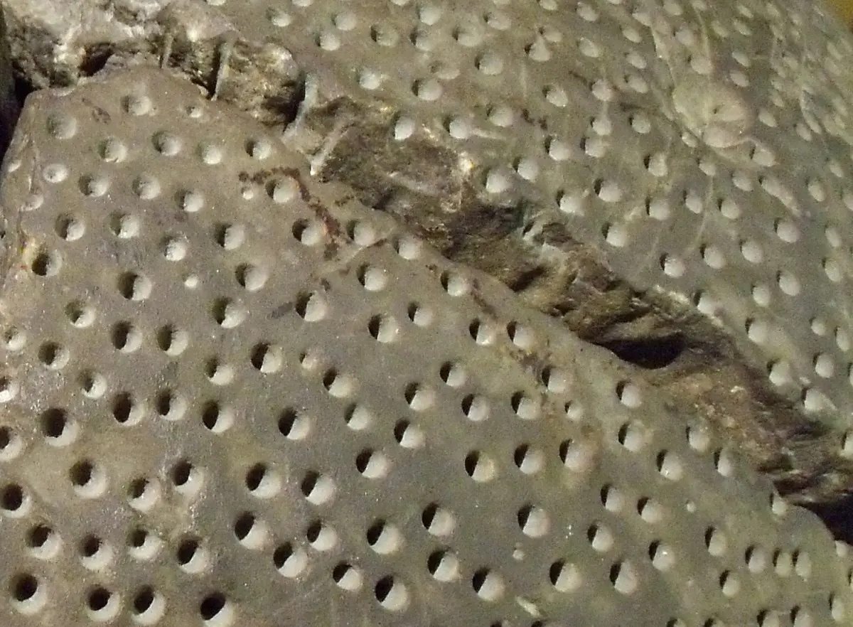 Съставен от пясъчник, съдържащ калциев карбонат, този образец не прилича на никоя известна седиментна структура. Повърхността му е покрита с малки, плитки пори, водещи до прави, радиални камери, простиращи се от центъра. Тази уникална структура предизвика непрестанни дебати сред геолозите относно нейния произход.