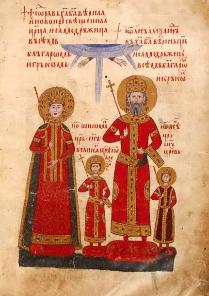 Най-често се появява формула „в Христа бога благоверен цар и самодържец”, както в изпълнения преди 1344/1345 г. Ватикански препис на Манасиевата хроника и Лондонското евангелие от 1355/1356 г., или разновидности като „Христолюбив” и „благоверен и Христолюбив” (Сборник на поп Филип, Висарионов Патерик от 1345/1346 г., Лаврентиев сборник, Апостол с тълкувания (края на 40-те години), Лесновски Парененсис (1353 г.), Германов сборник, Зографски апостол (1358/1359 г.), Лествица от 1363/1364 г., Празничен Миней. За славата на царя се говори в надписи като Ямболския от 1356/1357 г., Рояшкия (преди 1356 г.) и този от църквата в Беренде.