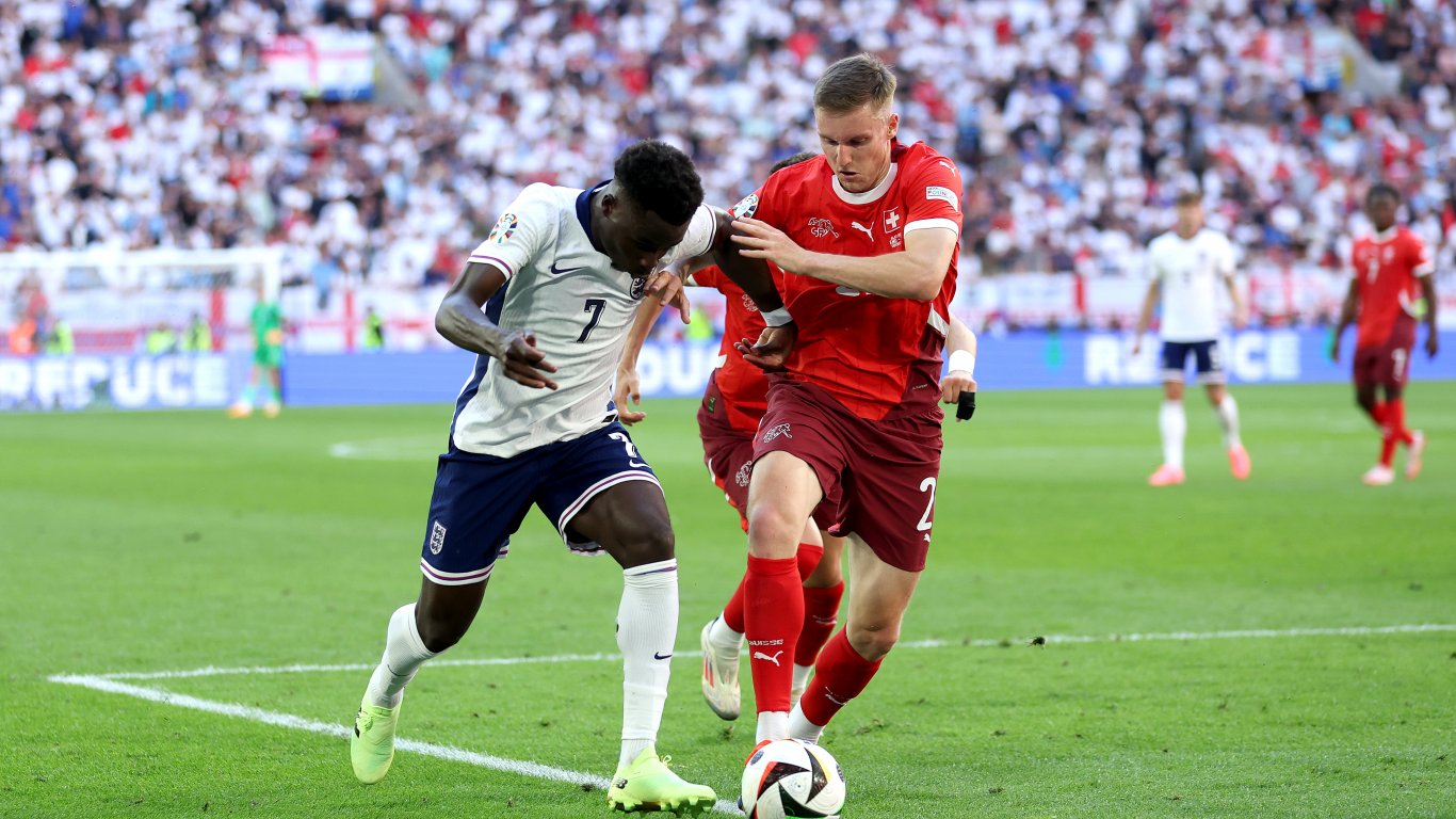 След около 15 минути футбол Англия натисна съперника си доста, като швейцарците имаха сериозно проблеми при опитите си да изнесат топката. Впечатляващата преса обаче бе единственото положително нещо за "трите лъва", които не успяваха да направят каквото и да е в нападение. Почти всичко минаваше през Букайо Сака на дясното крило, а той се опитваше да намери някой съотборник в наказателното поле, но без успех.
