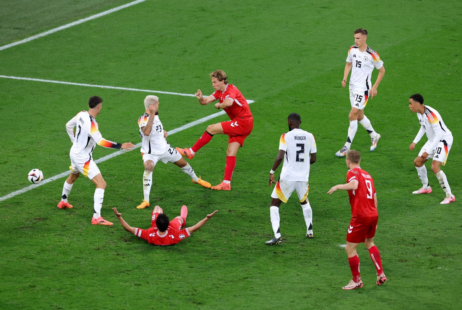 В 66-ата минута Дания можеше и трябваше да отговори. Расмус Хойлунд получи остър пас, бързо спря топката и стреля, но право в тялото на Мануел Нойер.