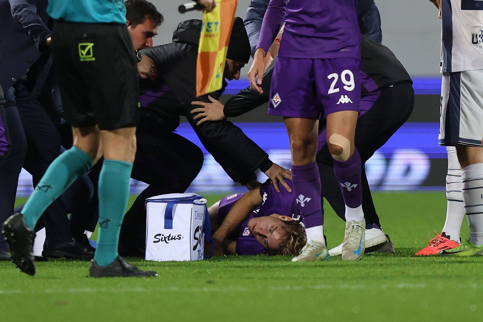 Бове беше откаран към университетската болница Кареги във Флоренция, а по лицата на играчите и на двата отбора личаха сълзи от притеснение.