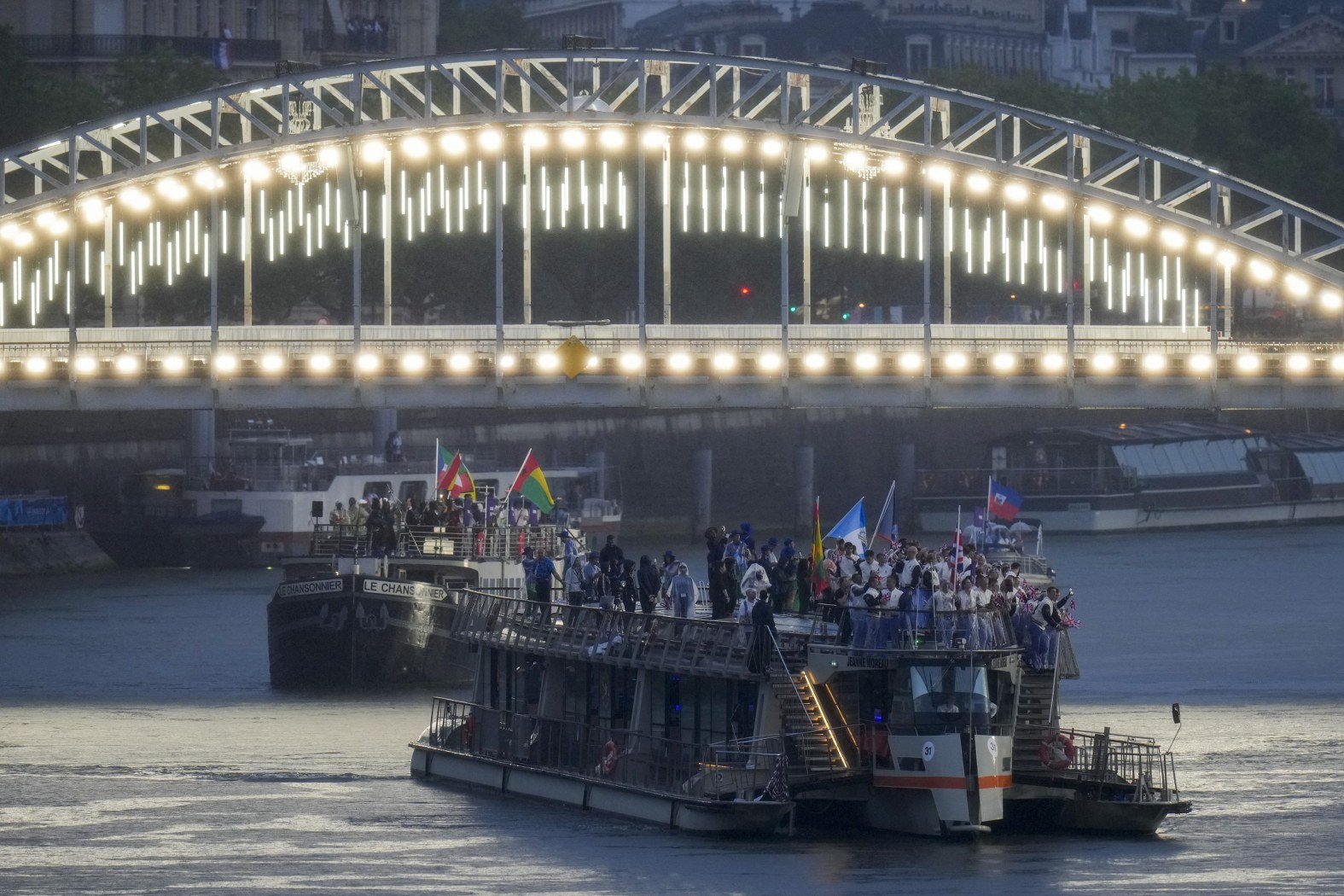 Мостът Аустерлинц беше "отворен" от разтваряща се водна бариера, а след това бе време да тръгне с лодката си първата делегация, която по традиция е тази на Гърция, създателят на олимпийската идея. Последва го превърналия се в традиционен отбор на бежанците, които са общо 37.