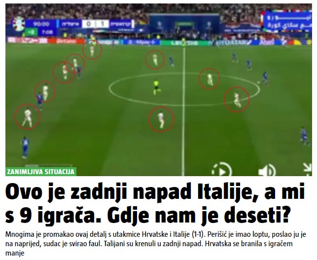 Изданието обаче хвърля вина и към централния нападател Анте Будимир. Именно той направи нарушение в предни позиции преди атаката на Италия, довела до изравнителен гол. Критиките не за самото нарушение, а заради факта, че Будимир не се върна в защита и изгледа цялата ситуация от наказателното поле на Джанлуиджи Донарума. В последната атака хърватите се защитаваха с деветима срещу 10 италианци.