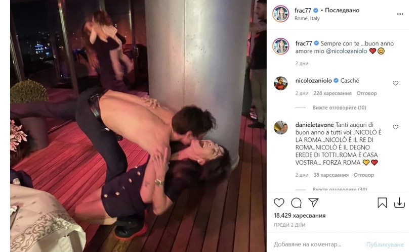 Младата футболна звезда на Италия и Рома Николо Дзаниоло определено не започна добре 2021 година. Майката на 21-годишния полузащитник пусна снимка от новогодишното им парти, на която двамата танцуват, а той е гол до кръста.