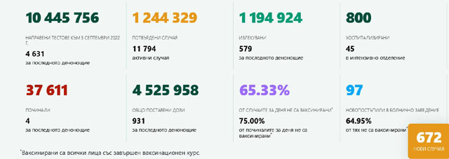 Излекуваните за последното денонощие са 61 души. Няма починали.