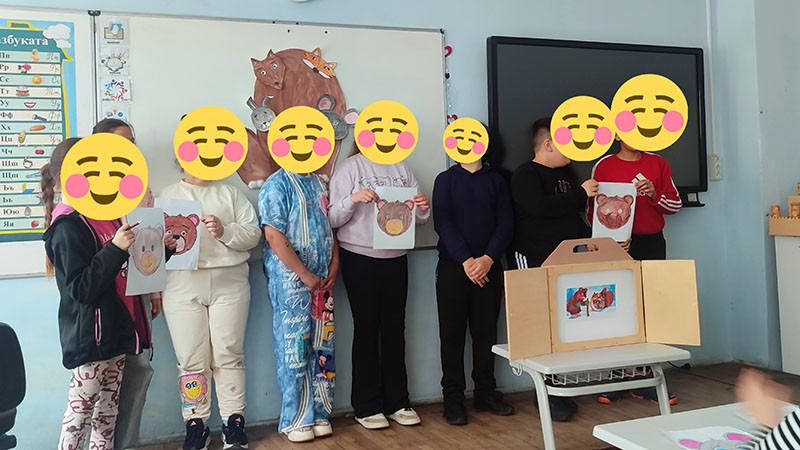 В тази интерпретация децата пресъздадоха „Дядовата ръкавичка“ чрез свои рисунки и маски, като последователно представяха героите и случките. По този начин те превърнаха познатата приказка в живо и въздействащо преживяване, подчертавайки посланията за сътрудничество, споделяне, толерантност и взаимопомощ.