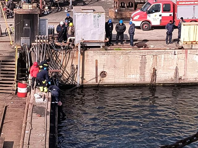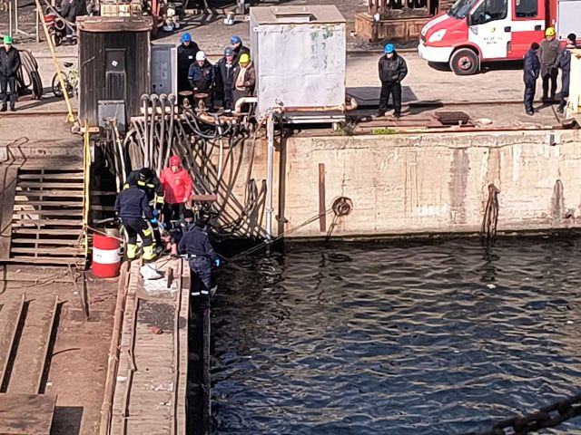 Мъжът е открит във водата около един от плаващите докове на Кораборемонтния завод от служители на ДОК-а.
