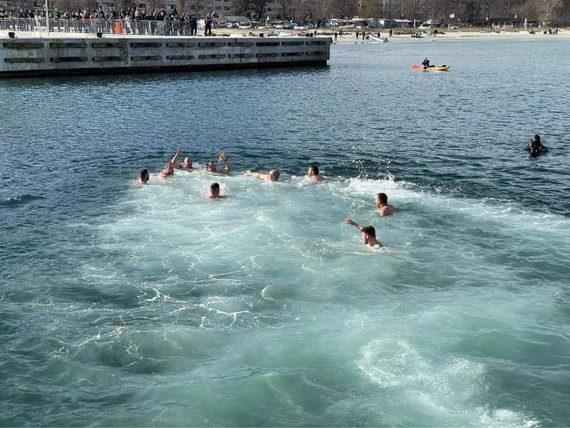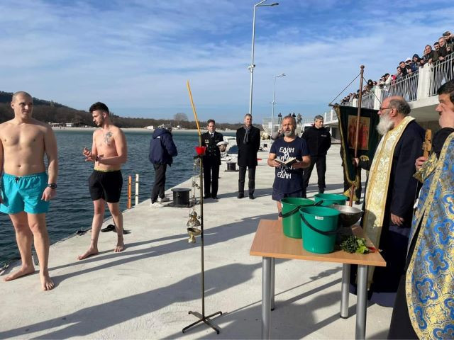 И тази година по традиция най-южният район на Варна отбеляза тачения християнски празник с Божествен водосвет и спасяване на кръста в студените морски води.