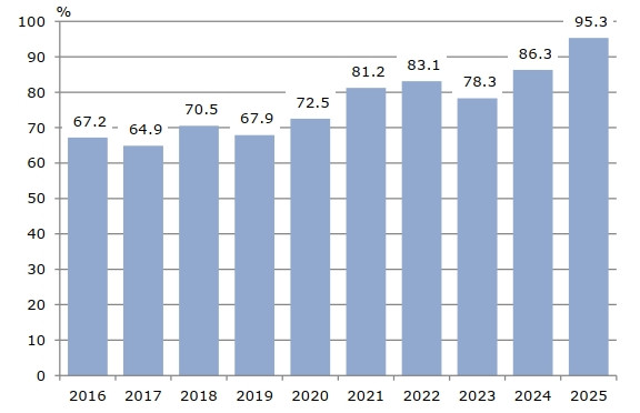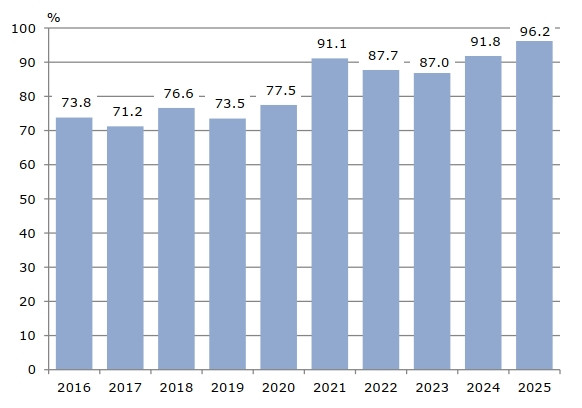 Над 96 процента от домакинствата във Варненска област имат домашен интернет, съобщиха днес от Териториалното статистическо бюро „Североизток“ в областния град. Изследването за използването на информационни и комуникационни технологии е извършено през миналата година. Резултатите показват, че в сравнение с 2024 г. домакинствата с домашен интернет са се увеличи с 4,4 процента. За периода 2016-2025 г. ръстът на семействата с достъп до глобалната мрежа е 22,4 процента.