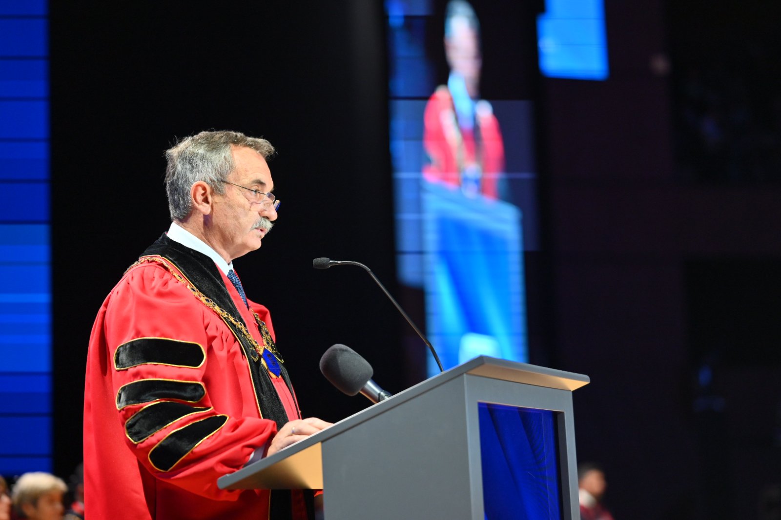 „Випуск 2025“ на Факултета по медицина е специален“, подчерта в приветствието си ректорът на МУ-Варна проф. д-р Димитър Райков. Той припомни, че випускът е започнал обучението си в разгара на пандемията от COVID-19 и студентите е трябвало да се адаптират към онлайн лекции, ограничения в клиничната практика, да преодоляват несигурността и тревожността на времето. „Въпреки всички изпитания, продължихте напред. Сред Вас има абсолвенти от България и още 24 държави. Вашето присъствие доказва, че желанието да помагаш и да спасяваш човешки живот няма граници“, допълни ректорът. В заключение проф. Райков заяви: „За мен е чест да Ви нарека колеги“.