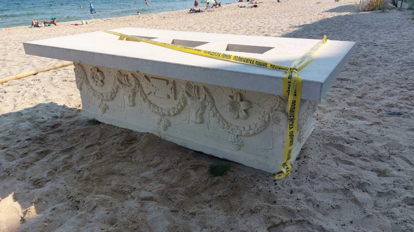 Саркофагът от плажа е боядисван с фасадна боя, вероятно е готвен за маса (СНИМКИ)
