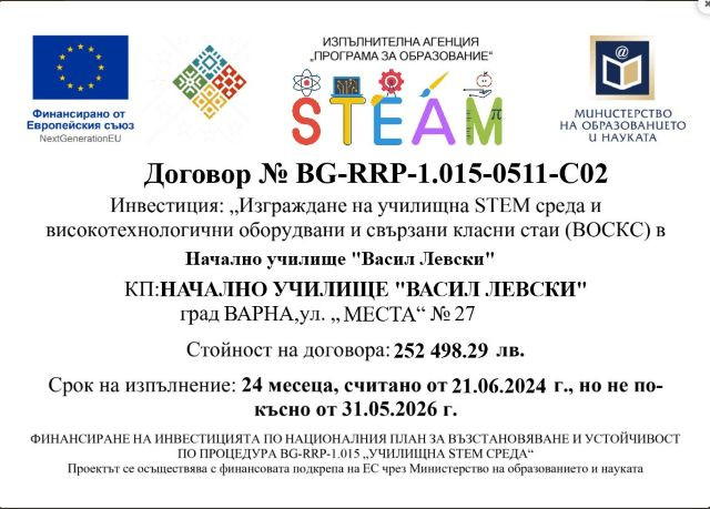 Начално училище "Васил Левски" във Варна открива STE(A)M център под мотото "Учим днес. Създаваме утре"
